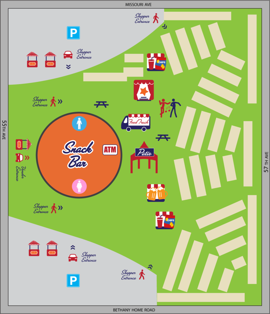 | Plan your visit to the Glendale Swap Meet in Glendale, AZ using our detailed Glendale Swap Meet map. Navigate the market with ease and explore vendor areas, snack bars, beer gardens, entertainment zones, and other family-friendly activities throughout the market. For added convenience, you can view or download the map PDF below to print and bring with you on market day, helping you make the most of your visit to the Glendale Swap Meet. |