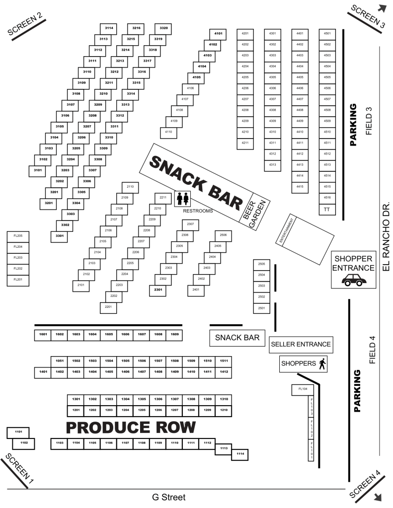 Plan your visit to the El Rancho Swap Meet in Sparks, NV using our El Rancho Swap Meet map. Easily navigate the market and discover vendor areas, food stalls, snack bars, beer gardens, entertainment zones, and other family-friendly activities throughout the market. For added convenience, you can view or download the map PDF below to print and bring with you on market day, making it simple to explore everything our market has to offer. |